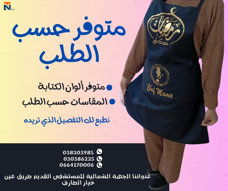 زيدي لمسة أناقة وحماية أثناء الطهي مع مريول مطبخ فاخر مطبوع خصيصًا لكِ سيدتي.